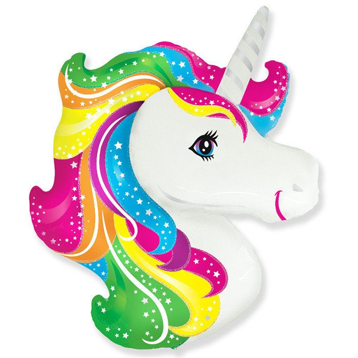 Воздушный шар фольгированный с гелием на день рождения, для детей "Голова единорога".