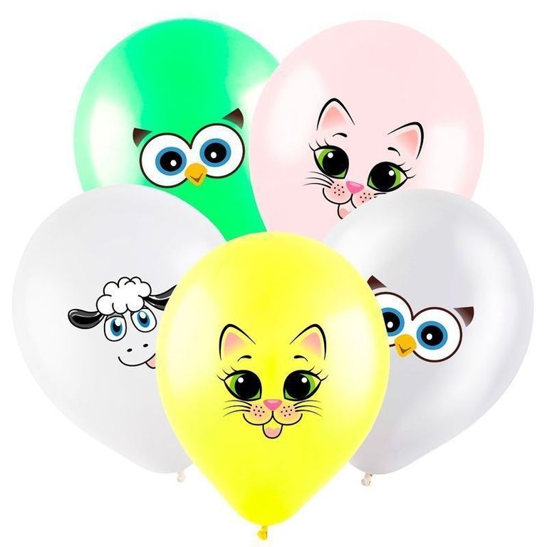 Латексный воздушный шар с гелием на день рождения, для детей "Мордочки животных".