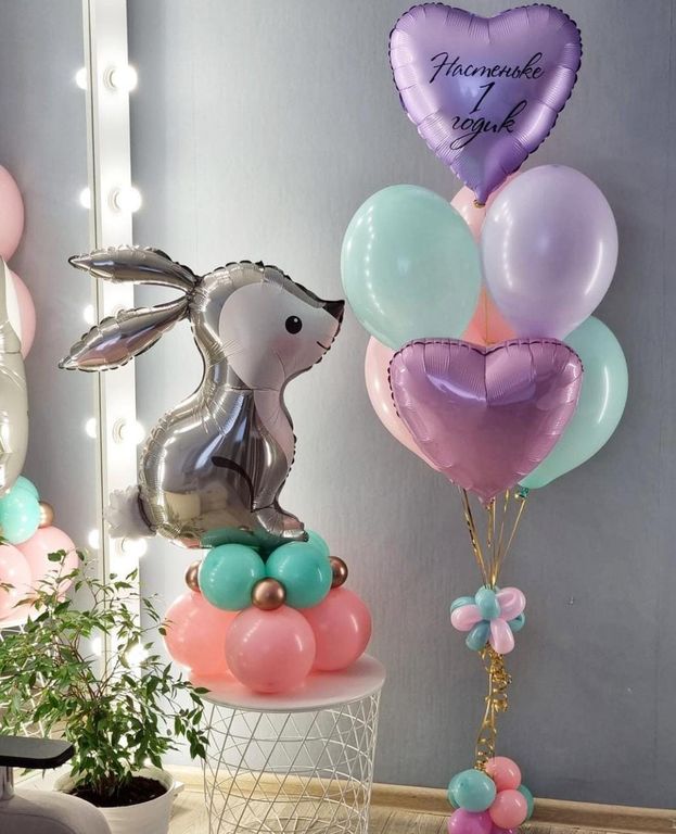1. Фольгированный шар Заяц на стойке из шаров - 1 шт.