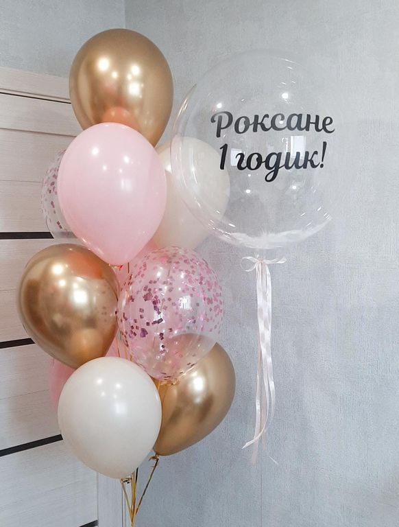 1 .ШАР Bubbles 46 см. C надписью и перьями - 1 шт.