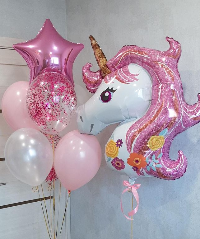 1. Фольгированный шар фигура голова единорога - 1 шт.