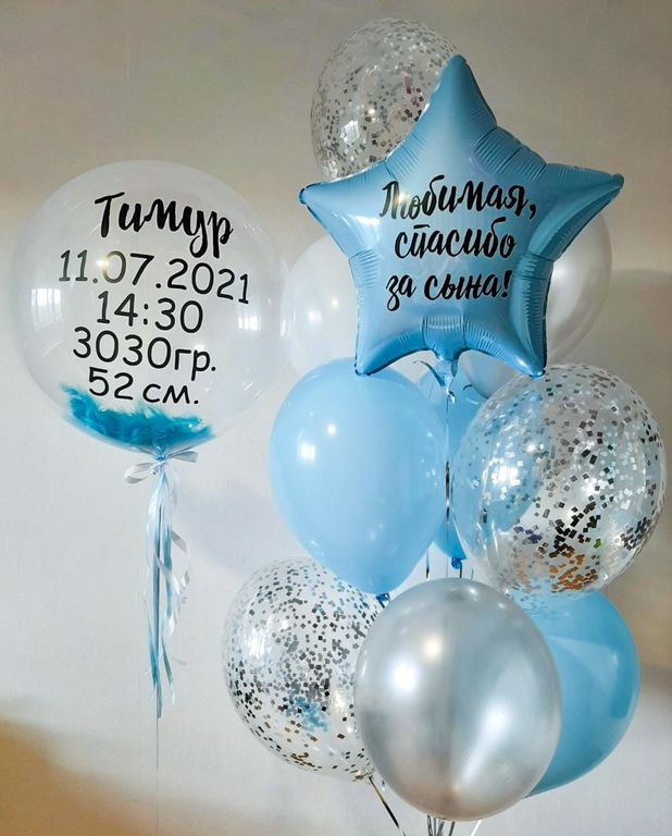 1. ШАР Bubbles 45 см. C надписью и перьями - 1 шт.