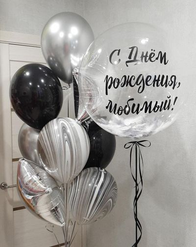 1. Шар Bubbles 45 см. с надписью и перьями - 1 шт.