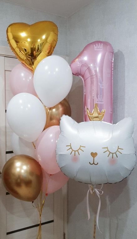 1. Фольгированный шар фигура котенок-принцесса - 1 шт.