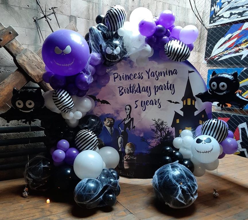 Фотозона в стиле семейки Аддамс.