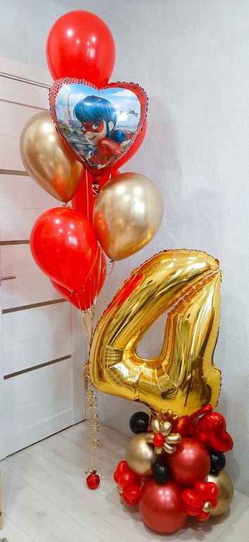 1. Фольгированный шар цифра 4 на стойке (надуты воздухом) - 1 шт.